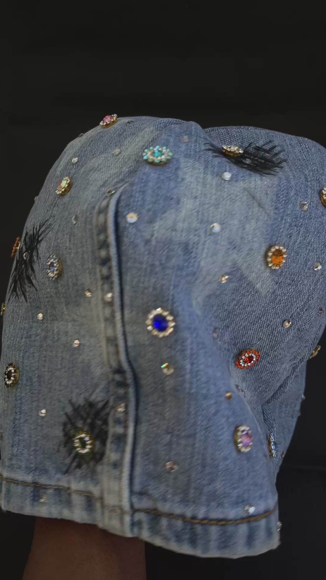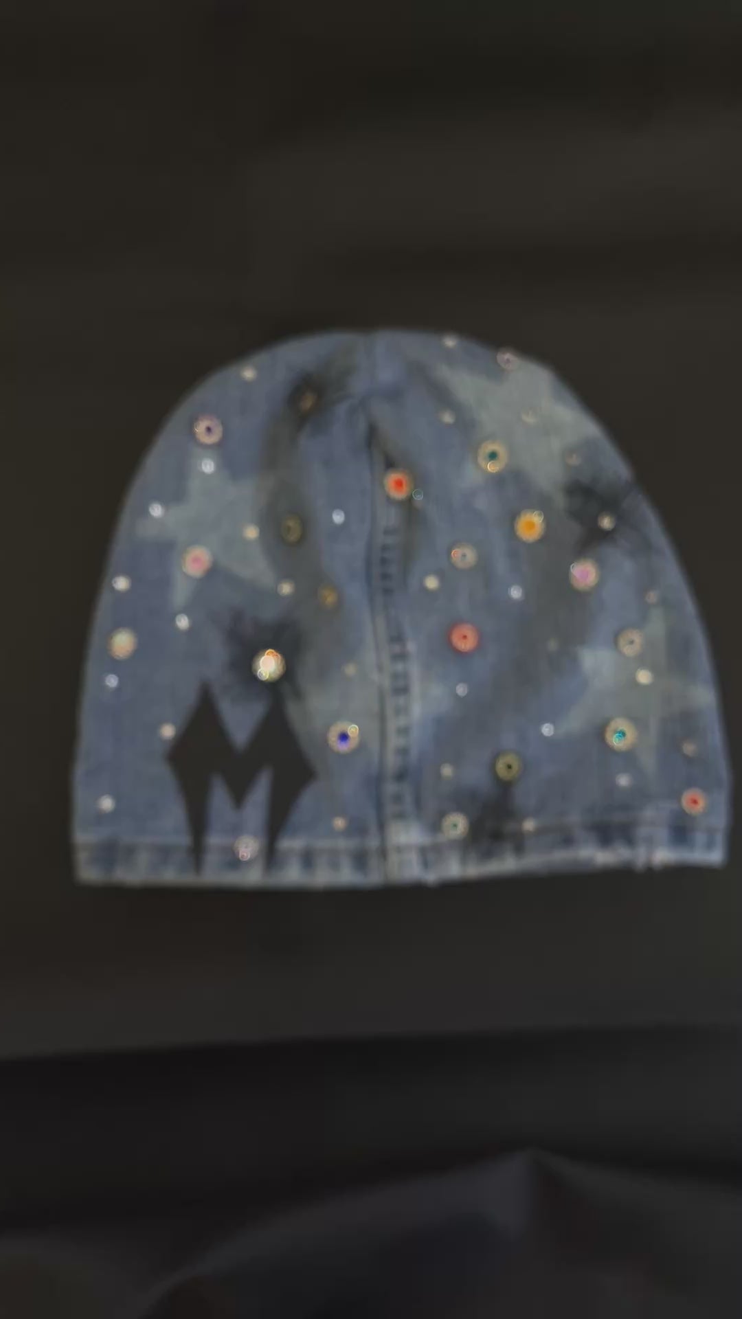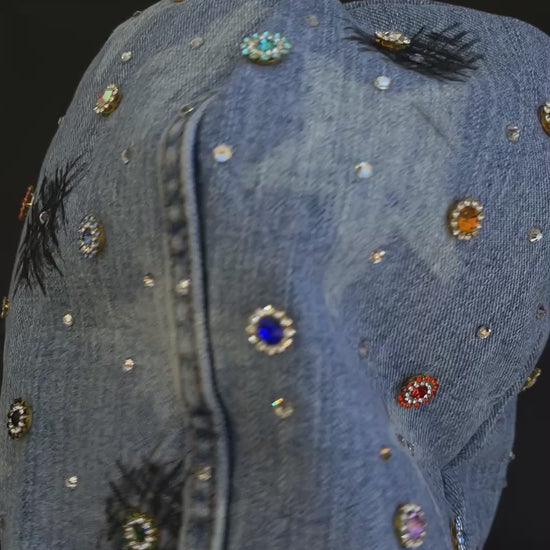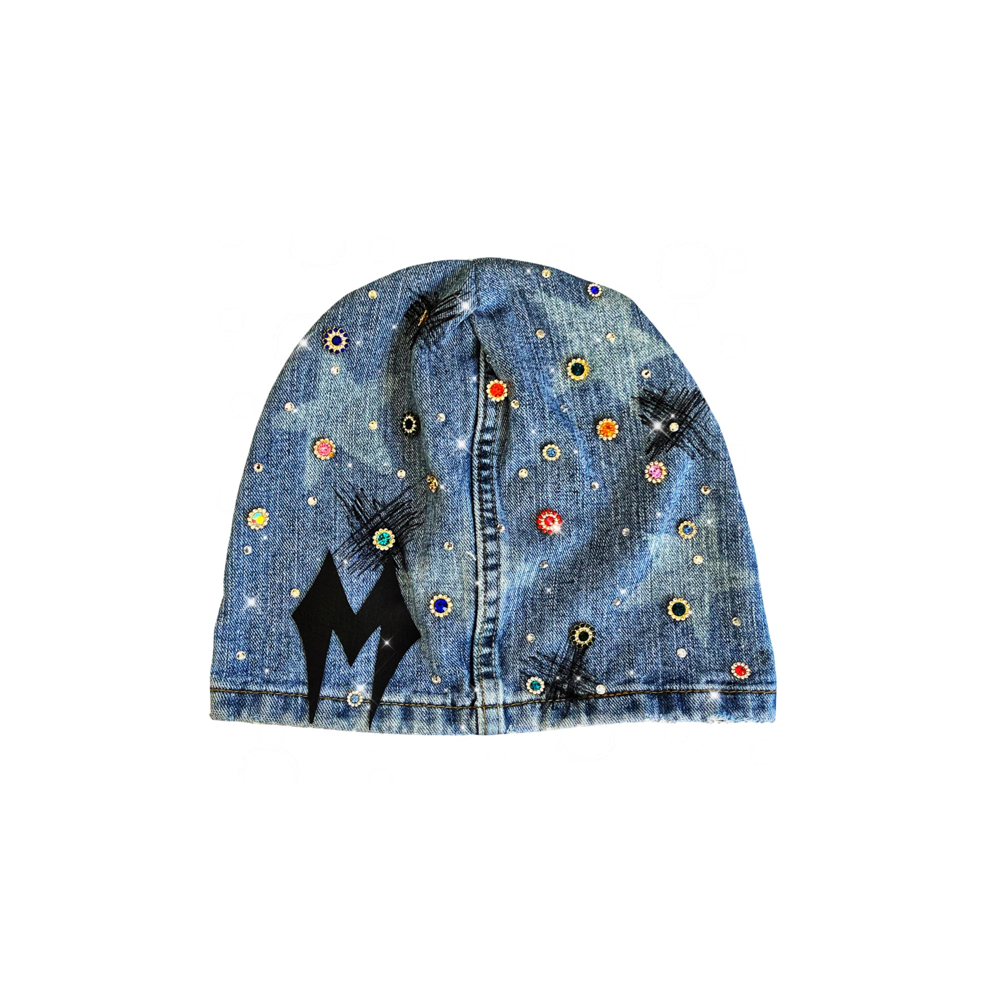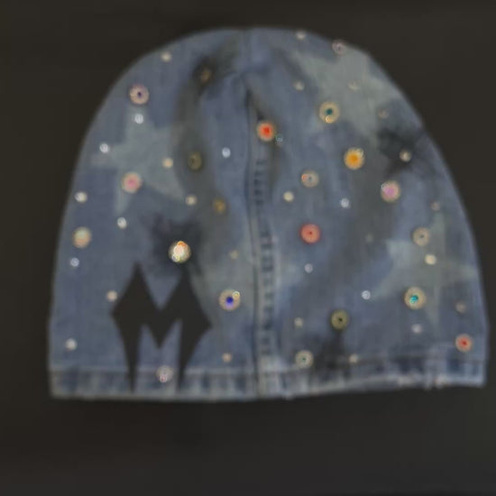 Expertly crafted with hand-stitched details, the MAYD deanie is a unique denim beanie that combines style and quality. Each piece is one of a kind, showcasing intricate stone and gem placements. Stand out from the crowd and make a statement with this exclusive accessory.